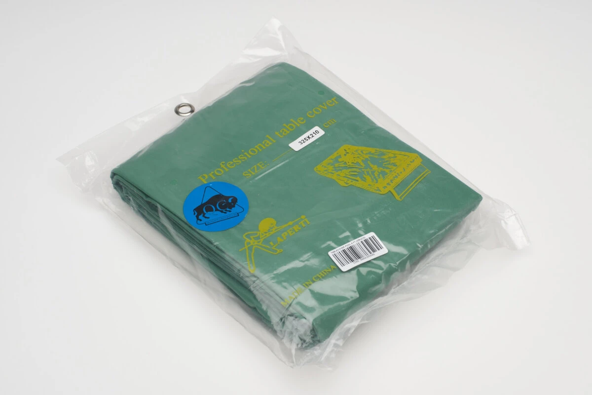 Mit dieser Abdeckplane schützen Sie Ihren Billardtisch vor Staub und Licht, wenn Sie nicht spielen. Einfache Abdeckplane aus grünem PVC, passend für 9-Fuß-Tische. An den Rändern ist die Plane mit Gewichten verstärkt, damit sie gut auf dem Tisch aufliegt.