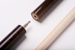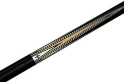 Ein schönes Einsteiger-Queue in schlichtem, klassischem Design mit 9,5mm breitem Qualitäts-Klebeleder. Auch zu diesem Preis erhalten Sie dieses Queue schon mit echt gesplicetem Dekor. Das heißt, dass die dunklen Spitzen („Splices“) durch Verleimung verschiedener Hölzer entstehen und nicht aufgemalt oder geklebt sind. Zusätzlich hat dieses Queue echte Splices am Unterteil, welche die schöne Verzierung mit wechselnden Hölzern erzeugen. Das Queue ist 3/4-geteilt und benötigt zum Transport somit einen entsprechenden Snooker-Koffer.