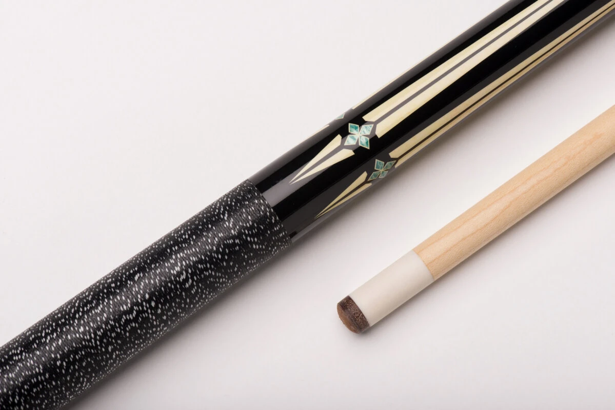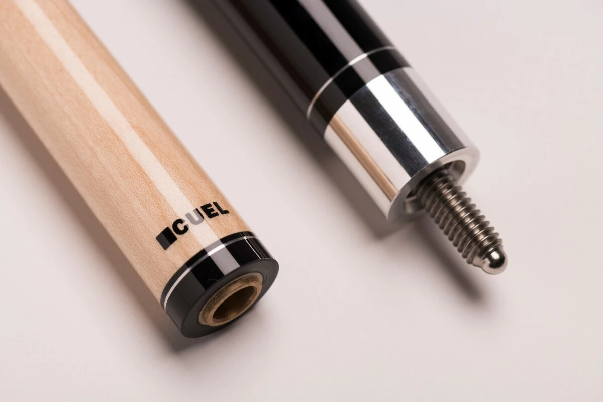 Die Billardqueues aus der BE0-Reihe von CUEL sind die perfekten Begleiter für Hobby- und Freizeitspieler sowie Einsteiger im Vereins-Poolbillard. Die zweiteiligen Queues haben eine Gesamtlänge von ca. 148 cm, was der klassischen Länge eines traditionellen Billard-Queues entspricht und ein Gewicht von 19-20 Unzen. Sie sind mittig geteilt und lassen sich in allen handelsüblichen Billardtaschen oder Billardköchern gut transportieren. Diese Pool-Queues überzeugen optisch mit verschiedenen schicken Printdesigns in Einlegeoptik, die sich den handgemachten Einlegearbeiten bei vielen hochpreisigeren Queues orientieren. Am hinteren Ende des Queues und über dem Abschlussring des Oberteils sind die Queues mit einem schwarzen CUEL-Logo versehen. Die Oberteile dieser Poolbillard-Queues sind aus Vollholz gefertigt, was für eine lange Haltbarkeit und konstantes Spielverhalten sorgt. Jedes Queue ist mit einem Lepro-Klebeleder ausgestattet und mit einem 5/16-18-Gewinde aus Metall verschraubt. Am Unterteil sorgt ein gewickeltes Griffband aus irischem Leinen für Sicherheit und einen optimalen Griff beim Stoß.