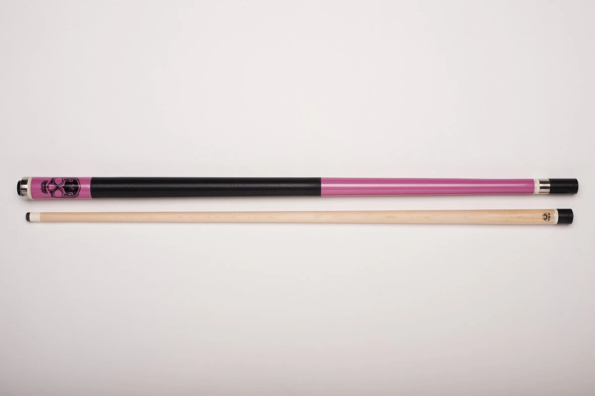 Die DF0-Reihe wartet optisch mit einem ganz besonderen Look auf. Sämtliche Queues sind im Griffbereich mit einem Totenkopfdesign verziert, das professionell aufgedruckt wird und dem Queue ein einzigartiges Aussehen verleiht. Der Metallring unter dem Totenkopfdruck ist rostfrei. Auf der technischen Seite überzeugen die Queues mit sauberer Verarbeitung und einem überragenden Preis-Leistungs-Verhältnis. Die Vollholz-Oberteile sorgen für ein konstantes und verlässliches Spielverhalten. Alle Modelle sind mittig im Verhältnis 1:1 geteilt, verfügen über ein Qualtäts-Klebeleder von Triangle und eine hochwertige Ferrule aus japanischer Konstruktion. Die 3/8×8-Verschraubung mit Holzgewinde garantiert eine einwandfreie Kraftübertragung. Zum Schutz des Gewindes gibt es ein paar Gewindeschoner zu jedem Billard-Queue mit dazu.