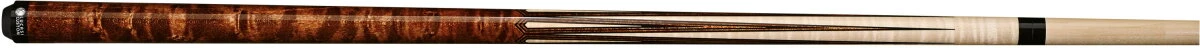 Walnussfarben gebeiztes Pool-Queue aus Ahorn mit Tigerstreifen ohne Griffband im Sneaky-Pete-Look mit Vier-Zacken-Design, mit doppelwandigen Diamanten-Points und Uni Loc Schnellverschluss.