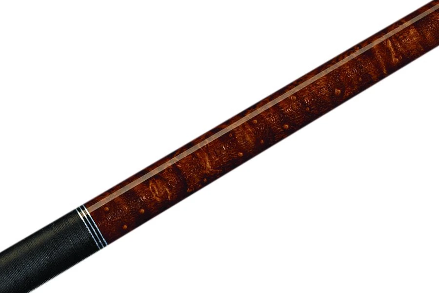 Dieses Queue kommt in klassischer Gestaltung daher und ist für diesen Preis wirklich ein edles Stück. Das Unterteil besteht aus wunderschönem, echten Vogelaugen-Ahorn in muskatfarbener Färbung. Es verfügt über ein rostfreies Edelstahl-Gewinde und mehrere silberfarbene Zierringe. Das Griffband besteht aus schwarzem, doppelt gepressten irischem Leinen und unterstreicht das edle Gemüt dieses Instruments.
