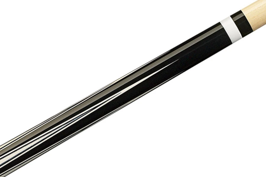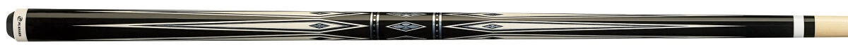 Klares, grafisches, schwarzes Queue mit weißen Diamant-Tropfen über die ganze Länge, silbernen Diamant-Akzenten, einem geschmeidigen lackierten Griffbereich, mit Implex-Gewinde und Butt.