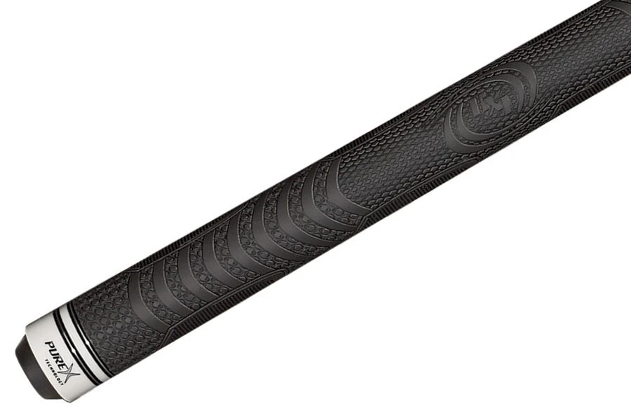 Klassisch gestaltetes Queue mit schokoladen-farbenem Forearm, schwarz-weißen Flammen, grauen Akzent-Diamanten, Silberringen und sportivem Griffband aus ergonomischem Gummi für perfekten Grip. Natürlich mit dem neuen HXT-Low-Deflection-Oberteil.