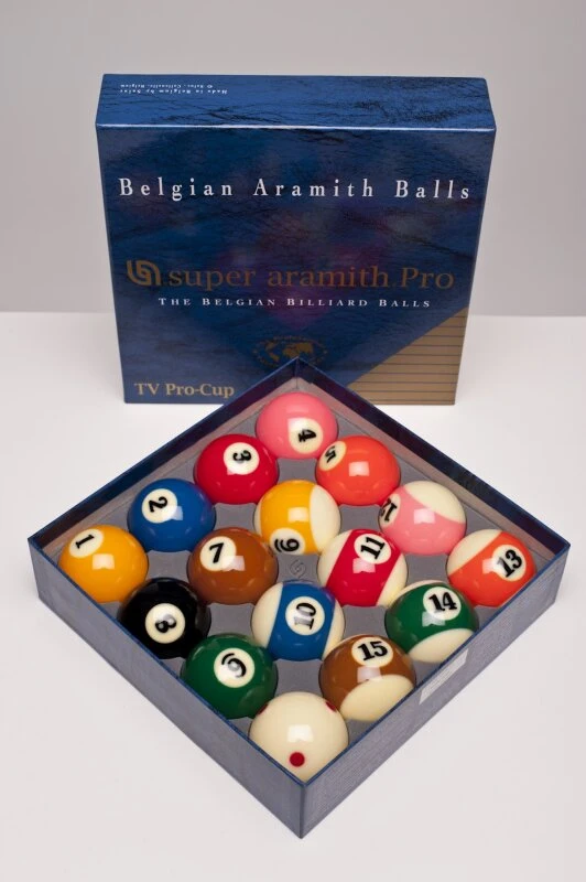 Der Super Aramith Pro TV-Kugelsatz für Pool-Billard ist der Mercedes unter den Billardkugeln. Das Material Super Aramith Pro sucht seinesgleichen in Hinsicht auf die Präzision der Verarbeitung, Gewicht, Einheitlichkeit und Langlebigkeit. Die Oberfläche ist speziell gehärtet und daher von einer gleichbleibenden und langanhaltenden Qualität.